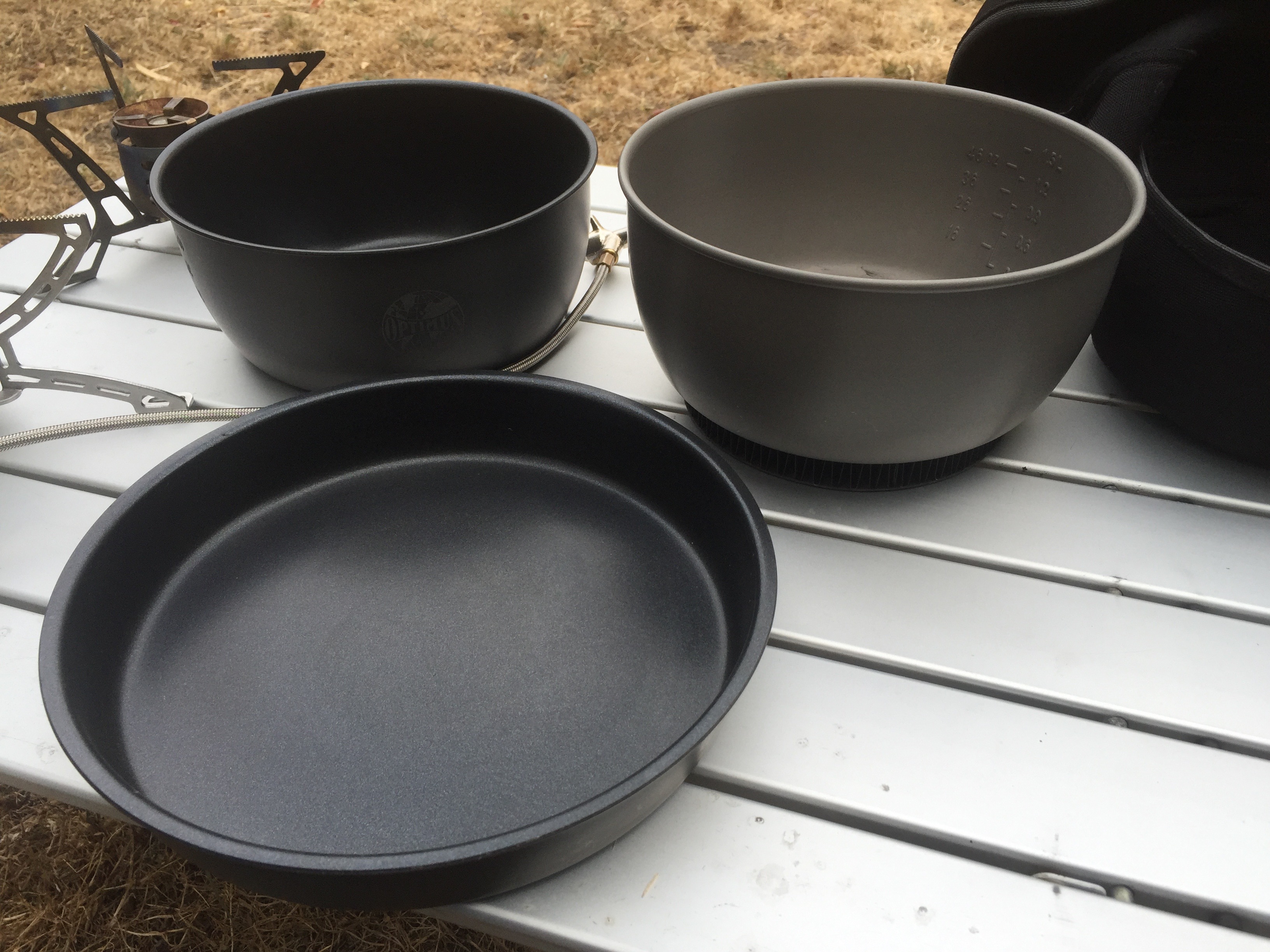 - Optimus HE Cook Set. While pretty large, it comes often on weekend trips as there are usually 3-4 people in my group.