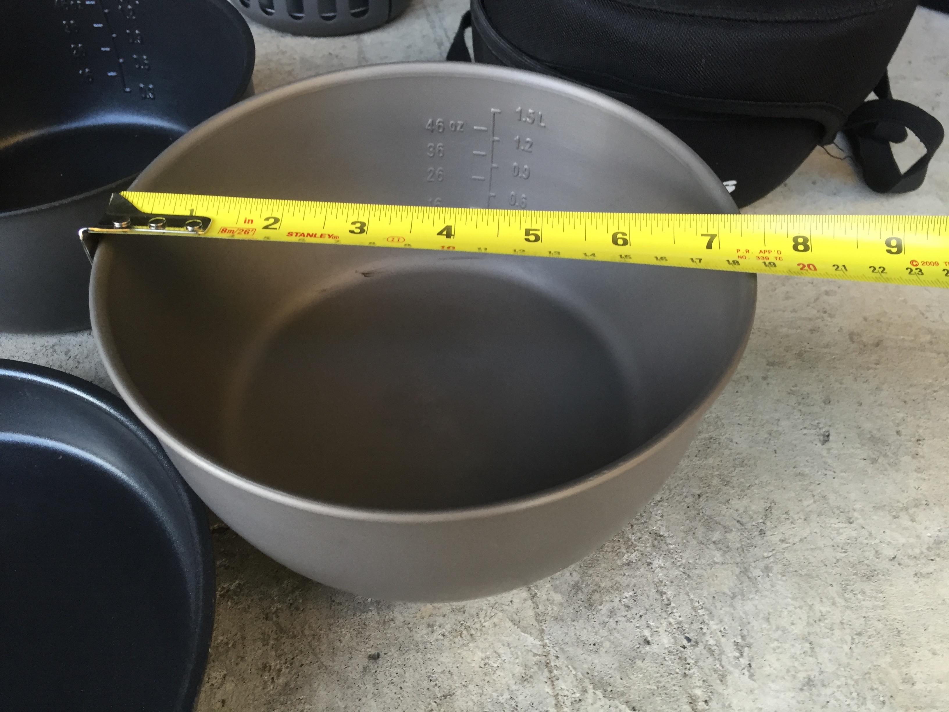 This set is heavier than a lot of titanium or anodized aluminum pot/pan setups out there today, but it’s also wider than many of them. I own quite a few pot-pan sets and for 3-4 people, this is my favorite setup.
