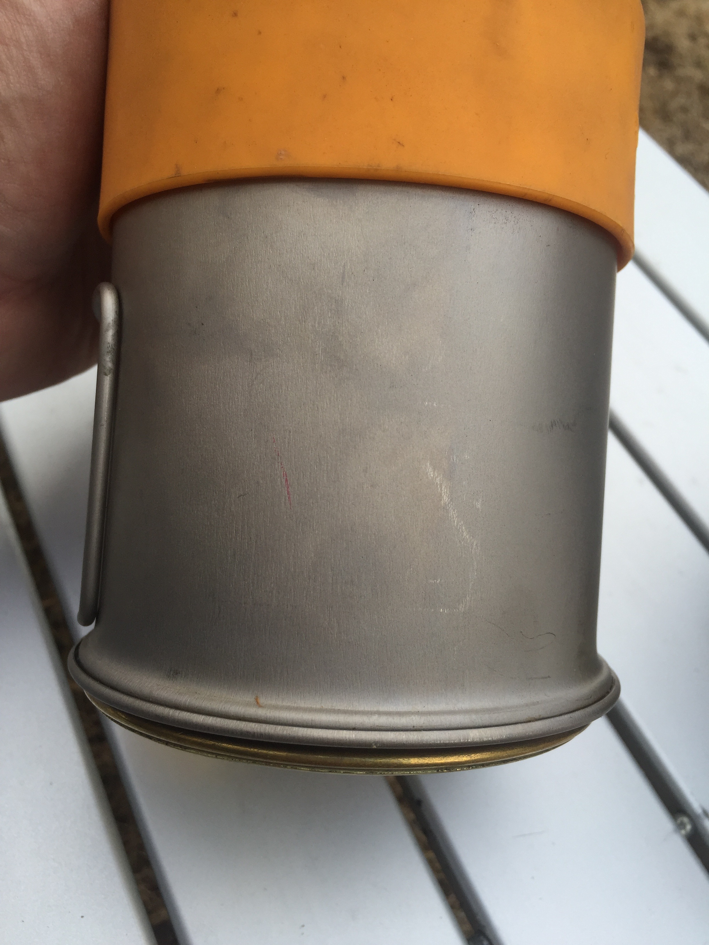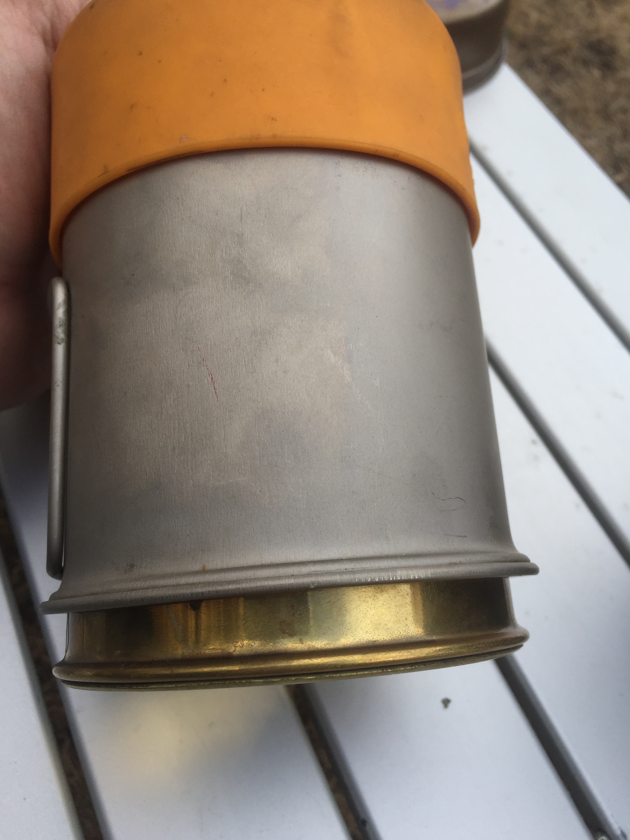 - It’s titanium, which means it heats super fast and cools super fast. Very similar to the cheap aluminum mess kits from back in the day. That’s a good thing, for the most part. You can boil water in it, and it will quickly cool down enough to drink. It also means you have to drink fast, but hey, you can’t have everything.