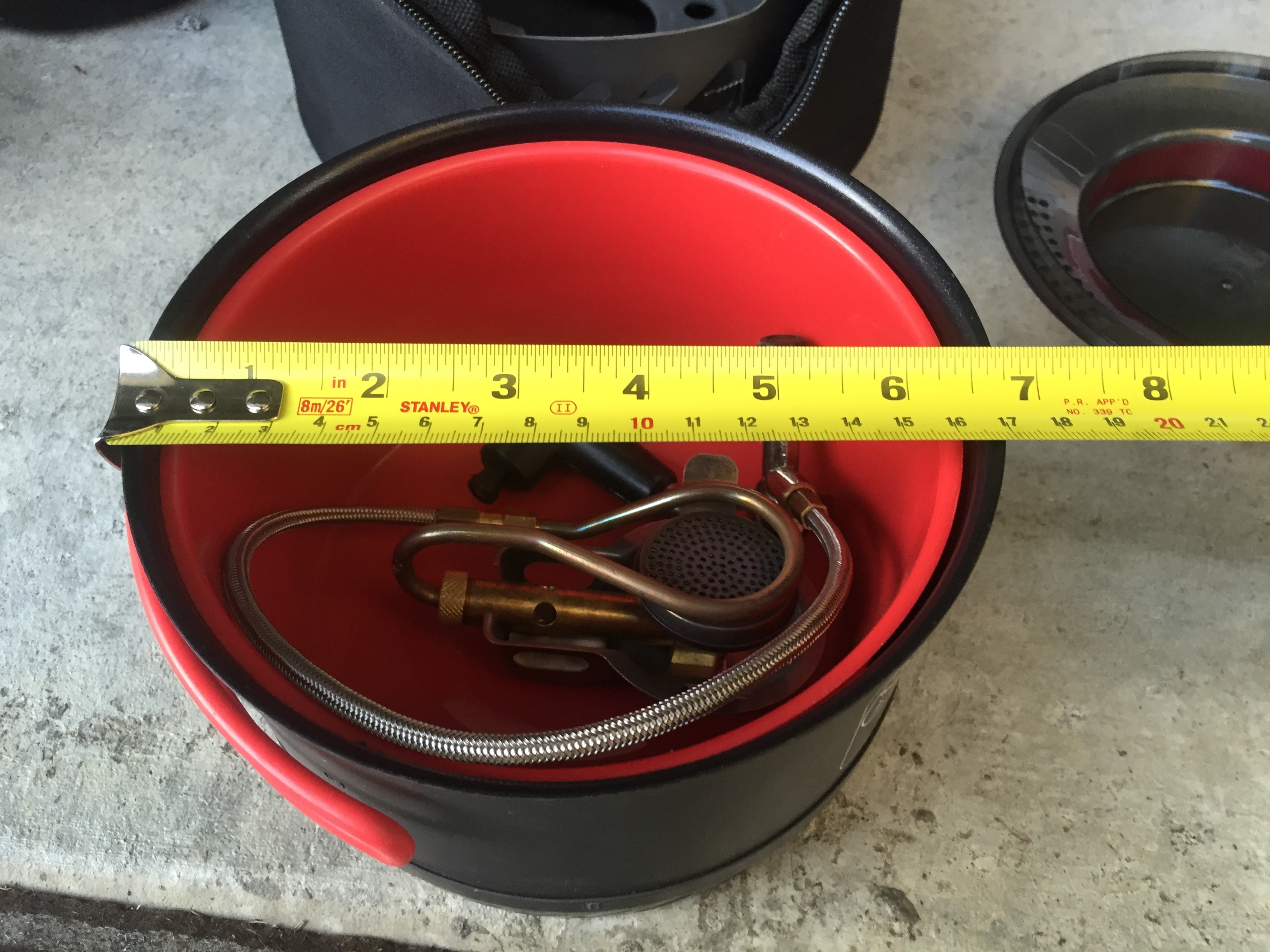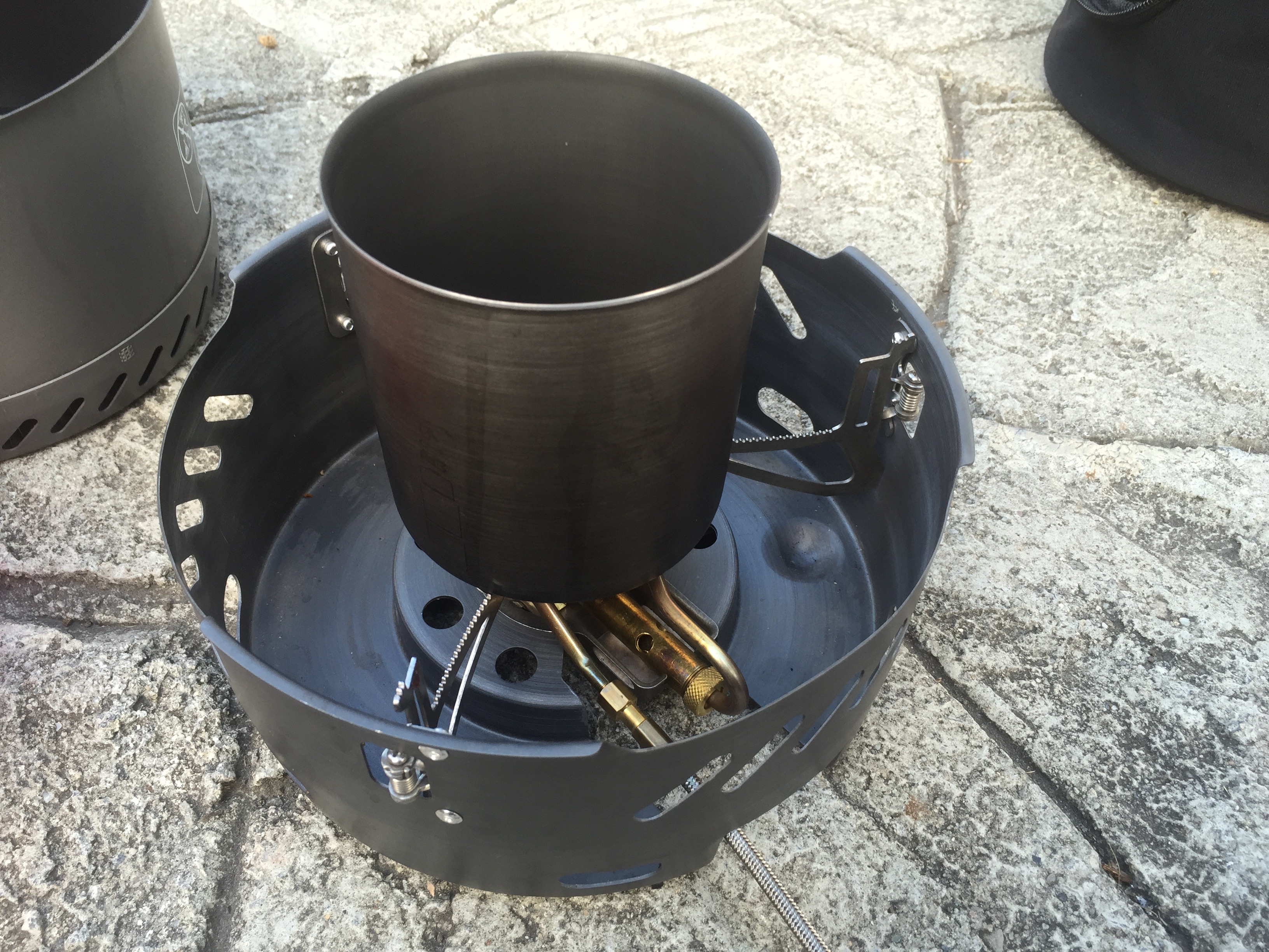 It’s not as fast as an omnifuel, but the extra minute of boiling time doesn’t bother me, and the setup really does minions heat loss, there is hardly any heat around the side of the pan/windshield. The gas goes about 40% further as result.