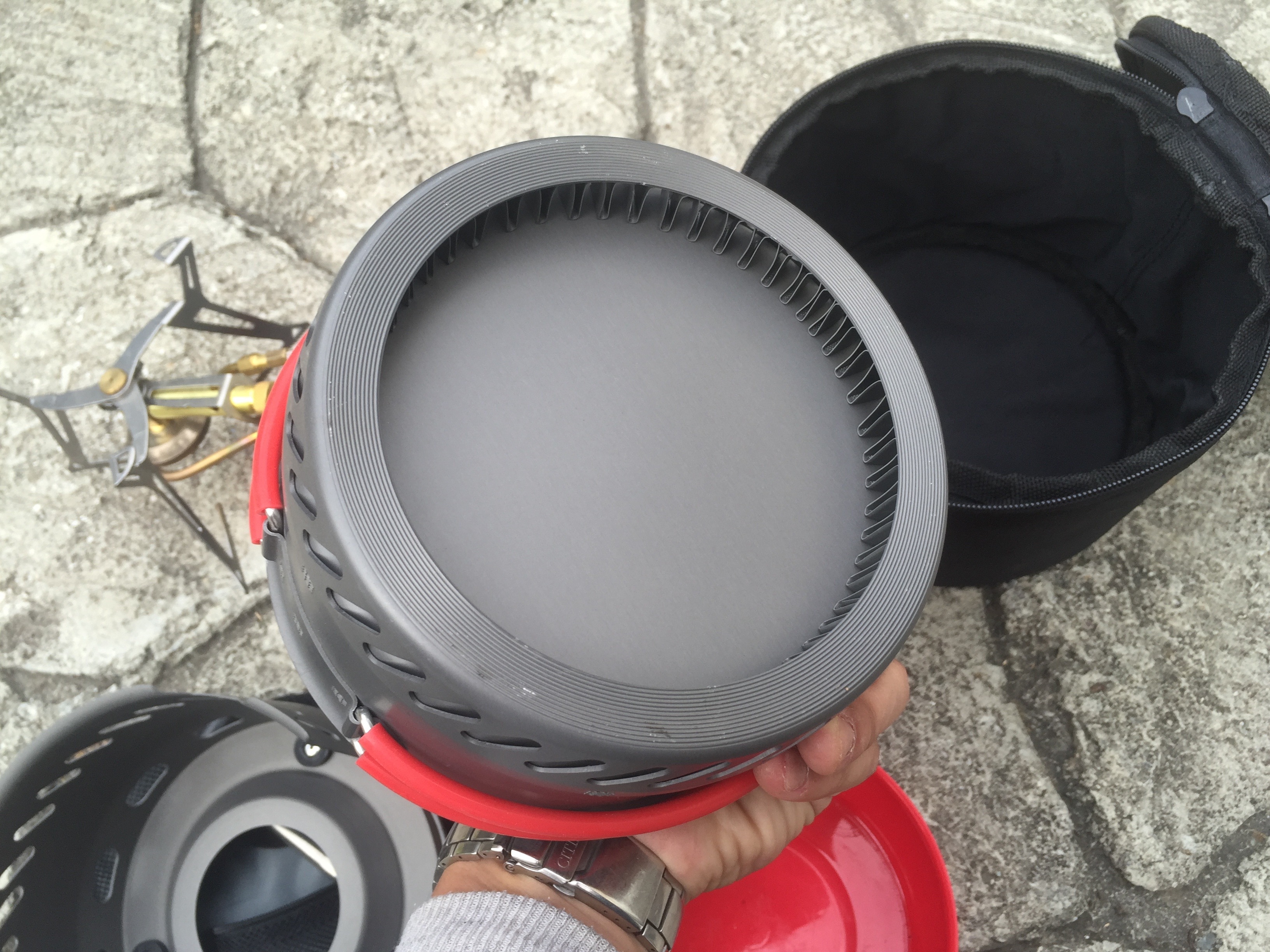 The first is a much thicker non-stick ceramic coating than you see in other camping pots. Primus says it’s much more durable and with three meals with this under my belt, and many meals cooked with other pots, it certainly seems that way. The thicker overall pot seems to spread the heat some, so the hot spot is wider than in other pots.