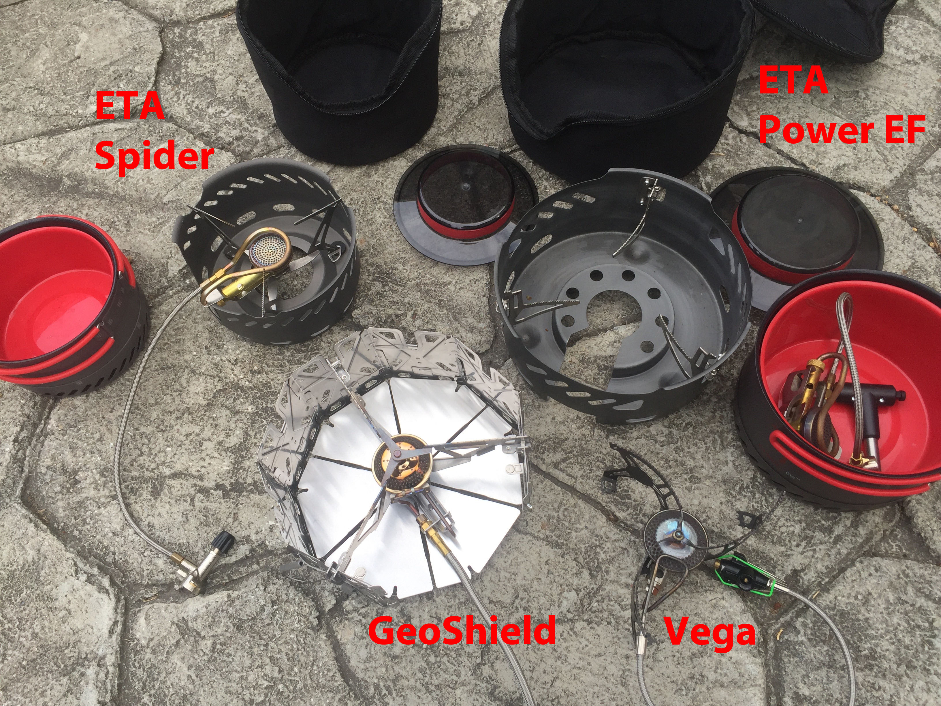 The Geoshield most closely fits between fuel line extended stoves like the Optimus Vega, or the MSR WindPro, and windproof all-in-one cooking systems like the Primus ETA Power series (EF and Spider), and JetBoil Helios (no longer sold). It would also compare to liquid fuel stoves in form factor, but I’ll skip comparing those.