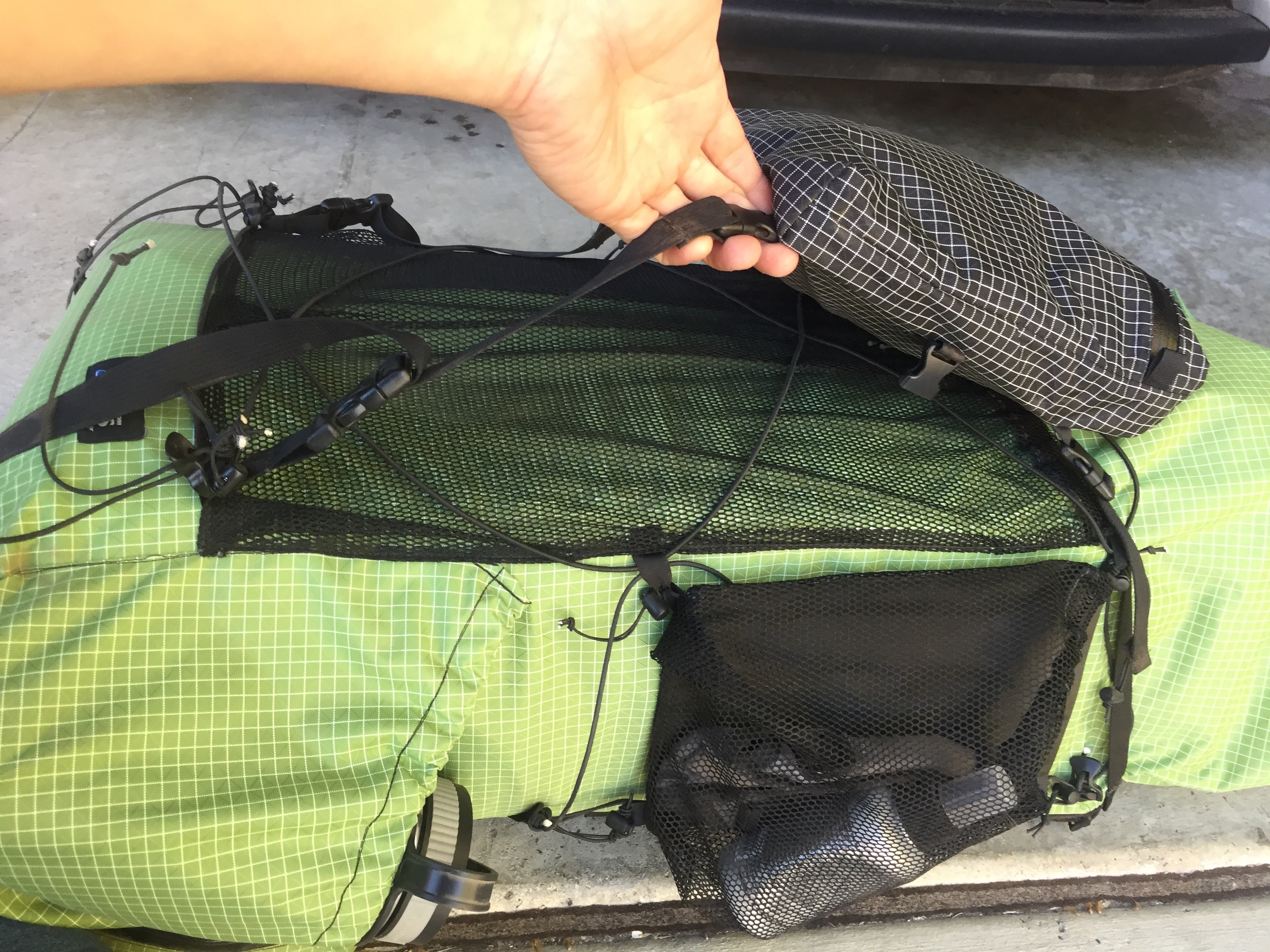 First and foremost, what I like about this pack is that my Ridgerest Z-Lite Sol fits inside the pack, with room for the rest of my gear. Most people keep the pad outside the pack, but keeping the pad inside serves two purposes. First, it keep the pad relatively clean and dry, protecting it from rainy hikes, but also dusty hikes. Secondly, it allows me to attach items to the outside of the pack that are more likely needed during a hike, or might need to stay out of the pack because it’s wet. It’s hard to believe that a pack this light is large enough to keep the foam pad inside the pack. Magic.