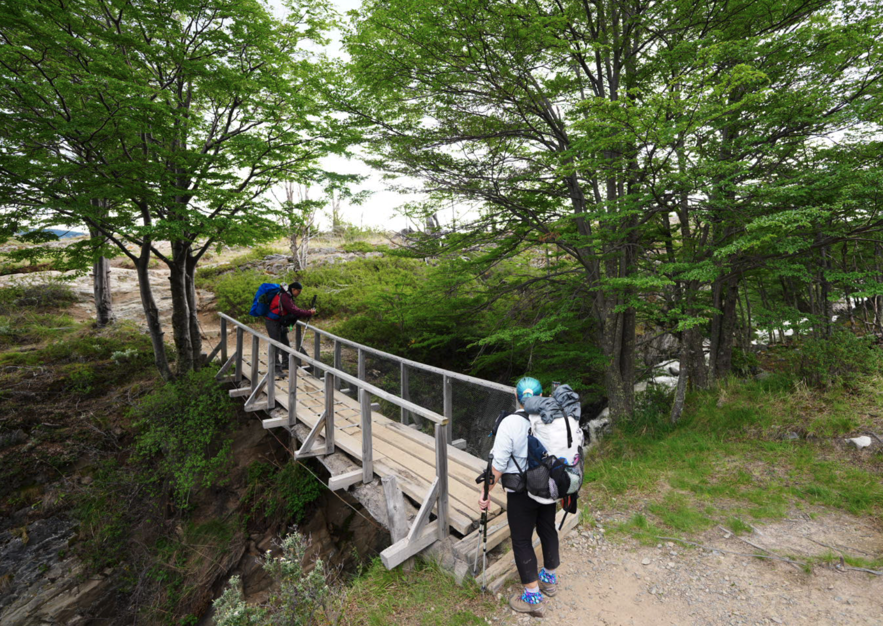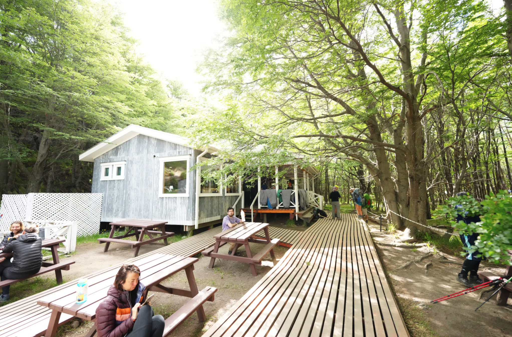 Much of the latter miles of the trail wormed through forest, which was beautiful in its own right, but not dissimilar to hikes we’ve done in California. It was a really pleasant surprise to have the trail open up suddenly and see Refugio Grey, a very robust building in an outcrop within the forest.