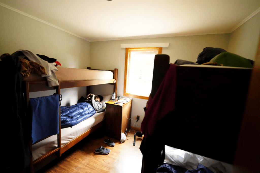 We got a little lucky with the bunk room this time: As there weren’t any solo backpackers reserving bunks that night, we had the room to ourselves. This was especially great because we were staying at Refugio Grey for two nights, so we felt comfortable leaving our stuff strewn about the room.