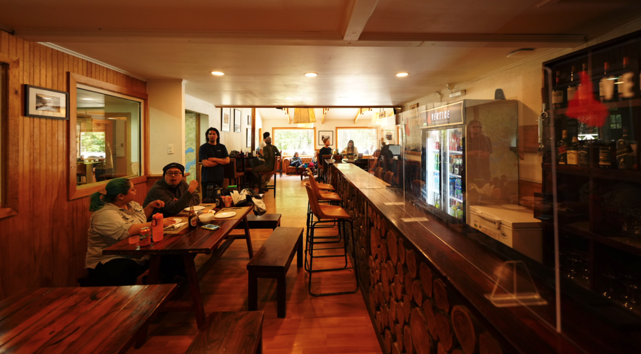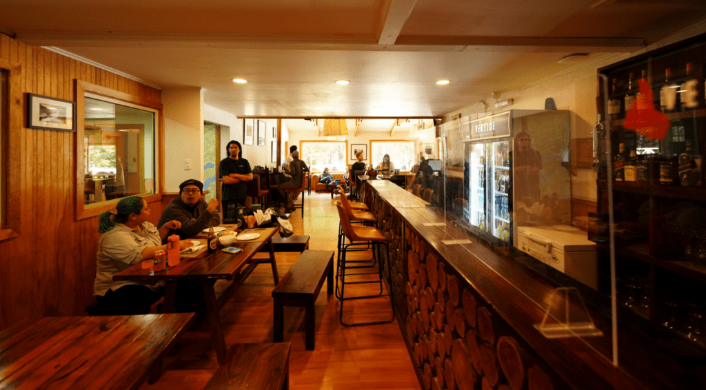 The entrance to Grey is beautiful, with a large central entryway, restobar on the left side and bunk rooms on the right. Great layout for hikers to enjoy good food, drink, and conversations as they share adventures. You can see from the photo below that there is a wooden plank “street” that continues to the right of the building. It extends quite a way.