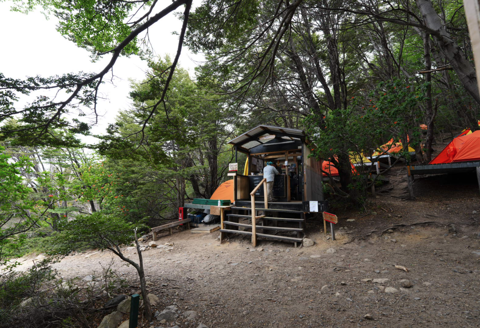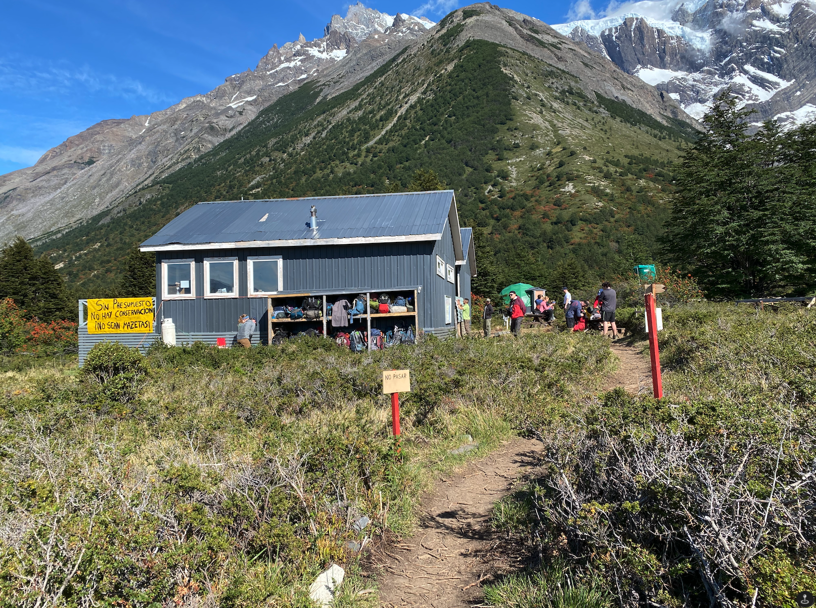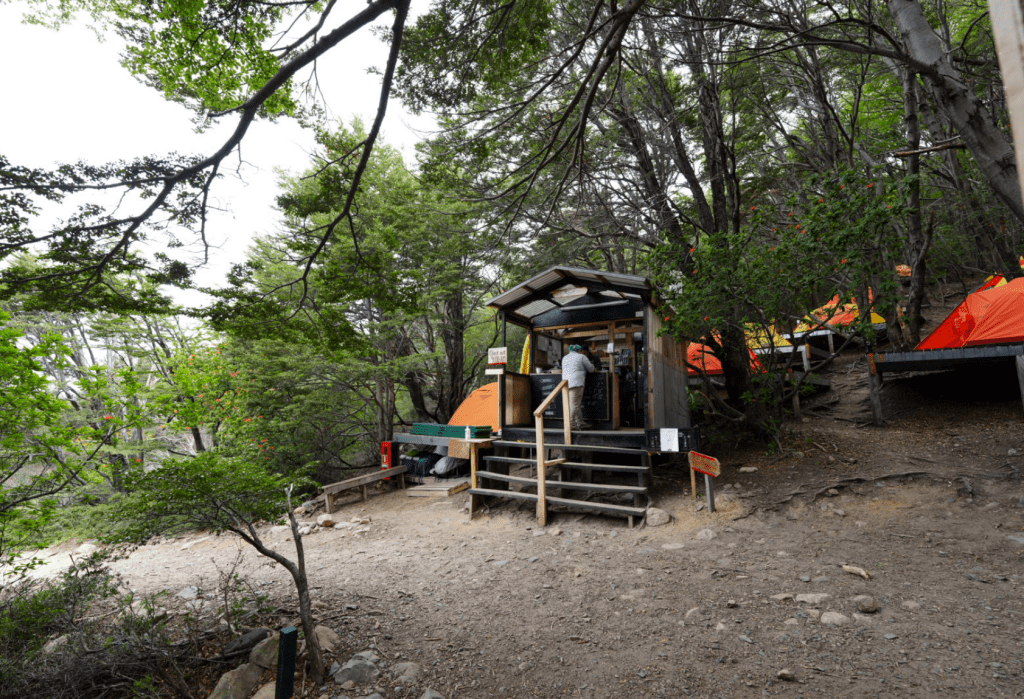 After a bit more uphill, we arrived at Camp Italiano. It’s technically closed as its one of the sites run by Conaf (The sites we stayed at were run by either Fantastico Sur, or Vertice). Conaf is the Chilean forestry and parks agency. This is the same agency that the park rangers work for. Though the Refugio was closed, it’s still a key junction and drop-off point for gear.