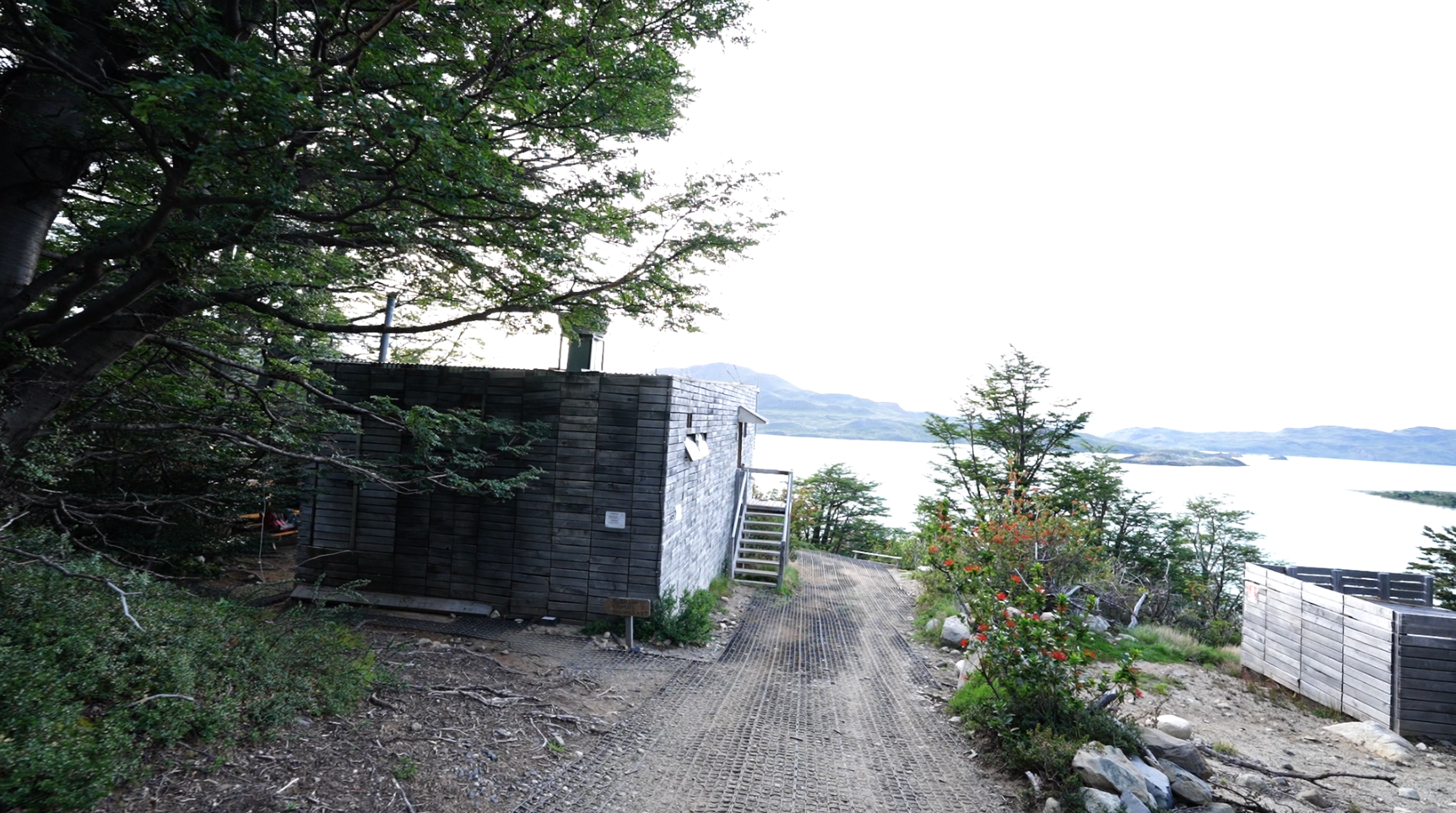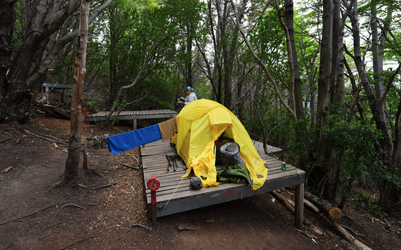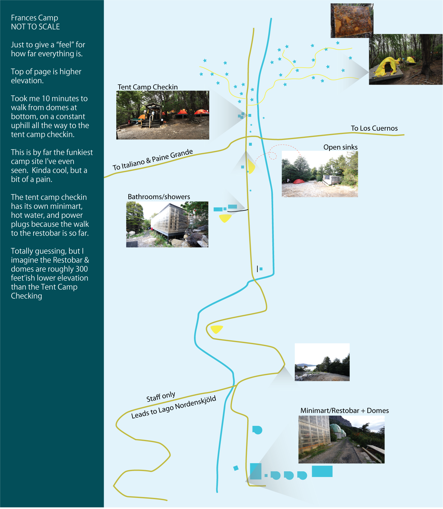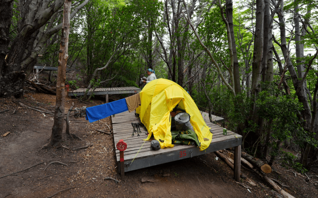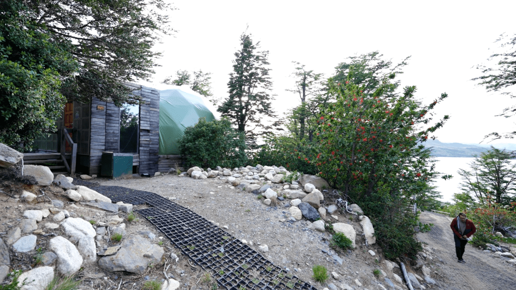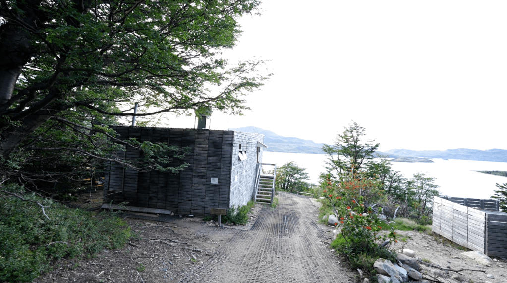The entire campsite is on a long trail, from the Tent Camp Checkin near the top at the highest point of elevation for Frances, and trails downhill for a solid 10 minutes to get to other parts of the campsite and eventually, the Lago Nordenskjöld.