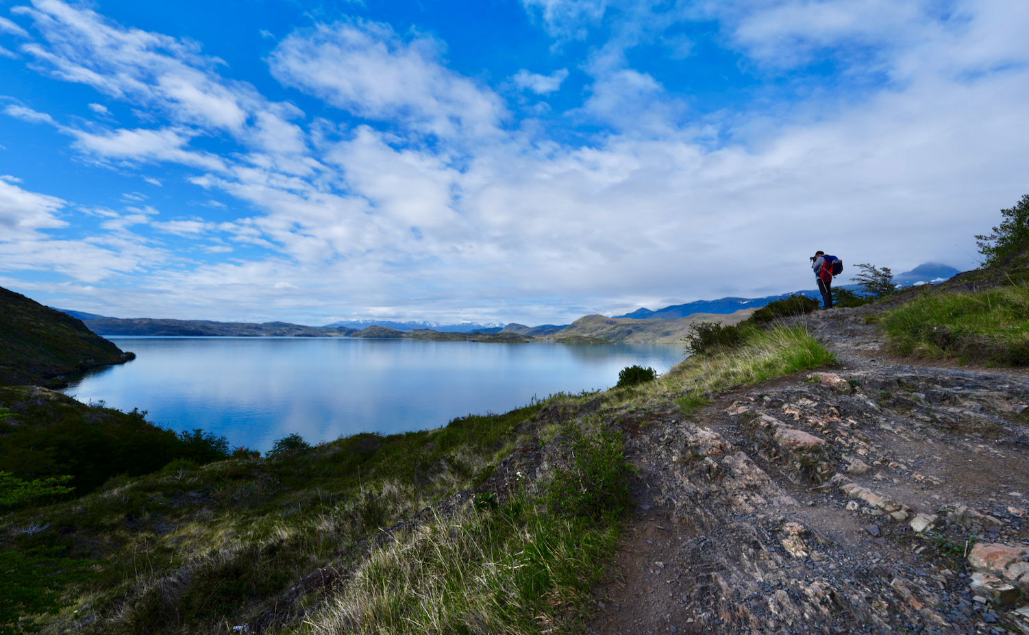 And then we bumped up against the west side of Lago Skottsberg. The color of Skottsberg is different from the other lakes like Grey, Pehoe, or Nordenskjöld. Its coloring is more typical of what you’d expect to see in any mountain fresh water lakes. These waters may have been glacial colored in the past, but today, it looks more like runoff from snowcapped mountains, similar to the lakes in Emigrant Wilderness in California.