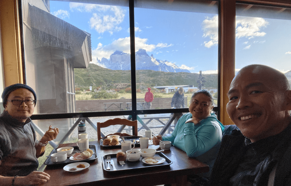 Thanks to Alli’s thinking earlier in the morning at Paine Grande, we enjoyed a nice meal in one of the tents to help recharge. Coupled with a good night’s rest, we were charged up for the big climb the next day.