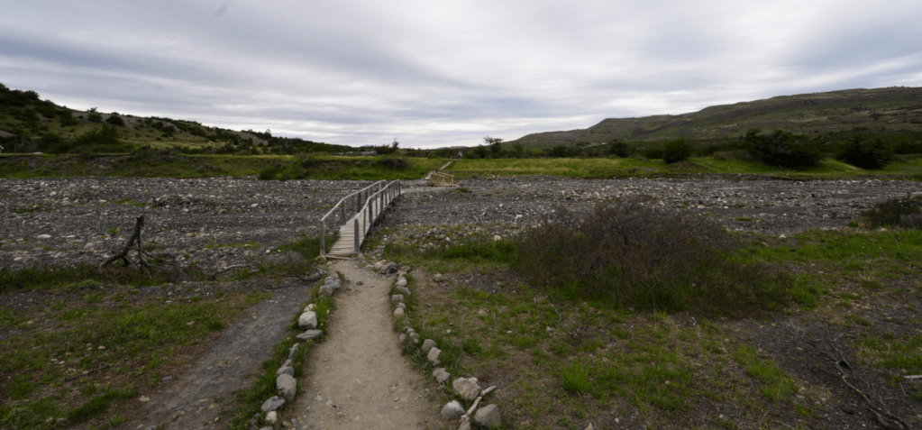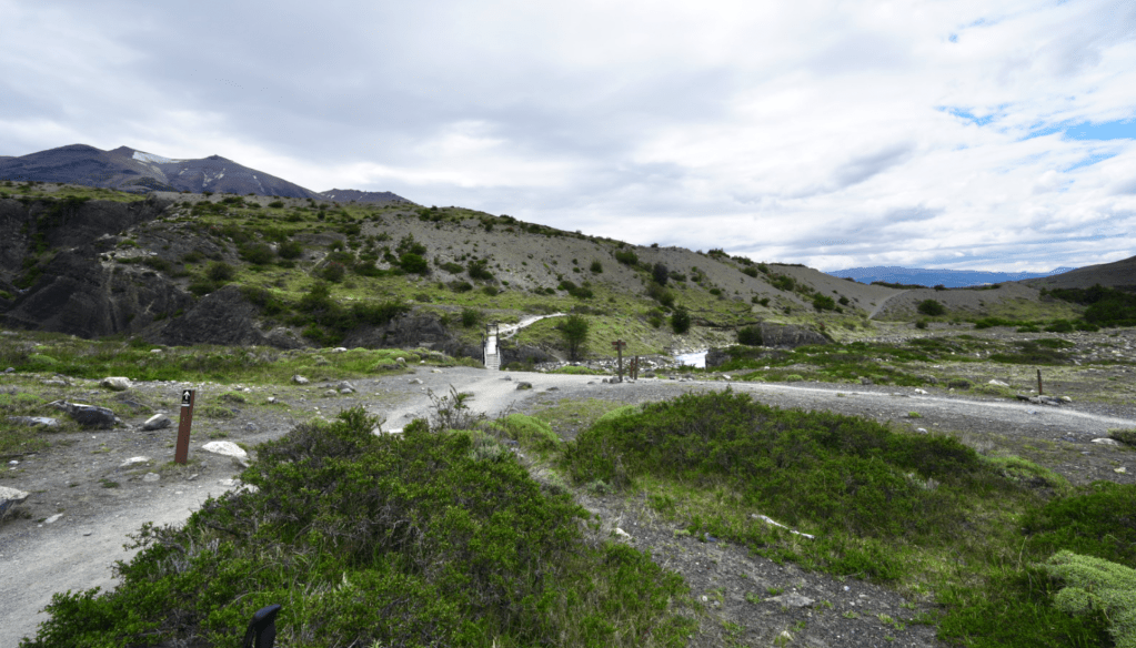 As the waters of the gorge became too steep to see, the land opened up, so we took the opportunity to grab some quick photos overlooking the gorge, with Torres Hotel and the eastern edge of Lago Nordenskjöld far off in the distance.