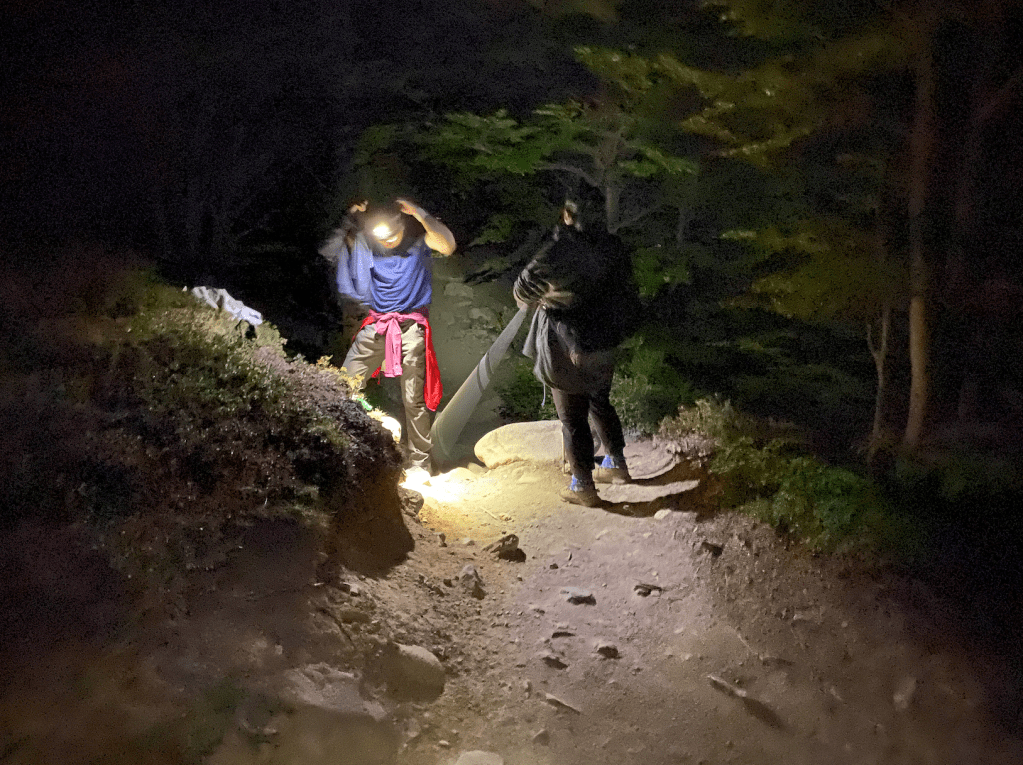 Around 2:30am, I went to wake Alli up, and then we all gathered back at the dining hall, ready for a night hike.