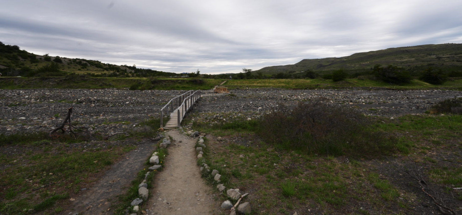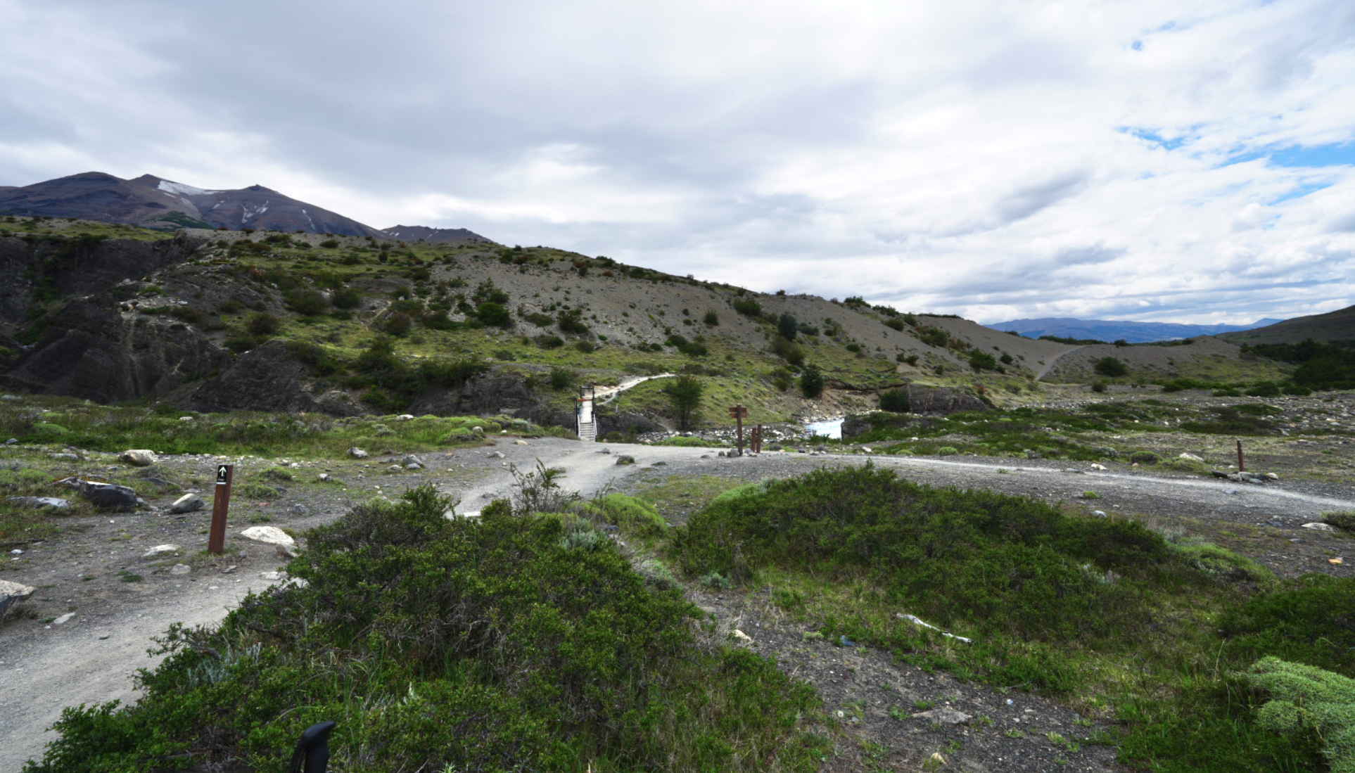 As the waters of the gorge became too steep to see, the land opened up, so we took the opportunity to grab some quick photos overlooking the gorge, with Torres Hotel and the eastern edge of Lago Nordenskjöld far off in the distance.