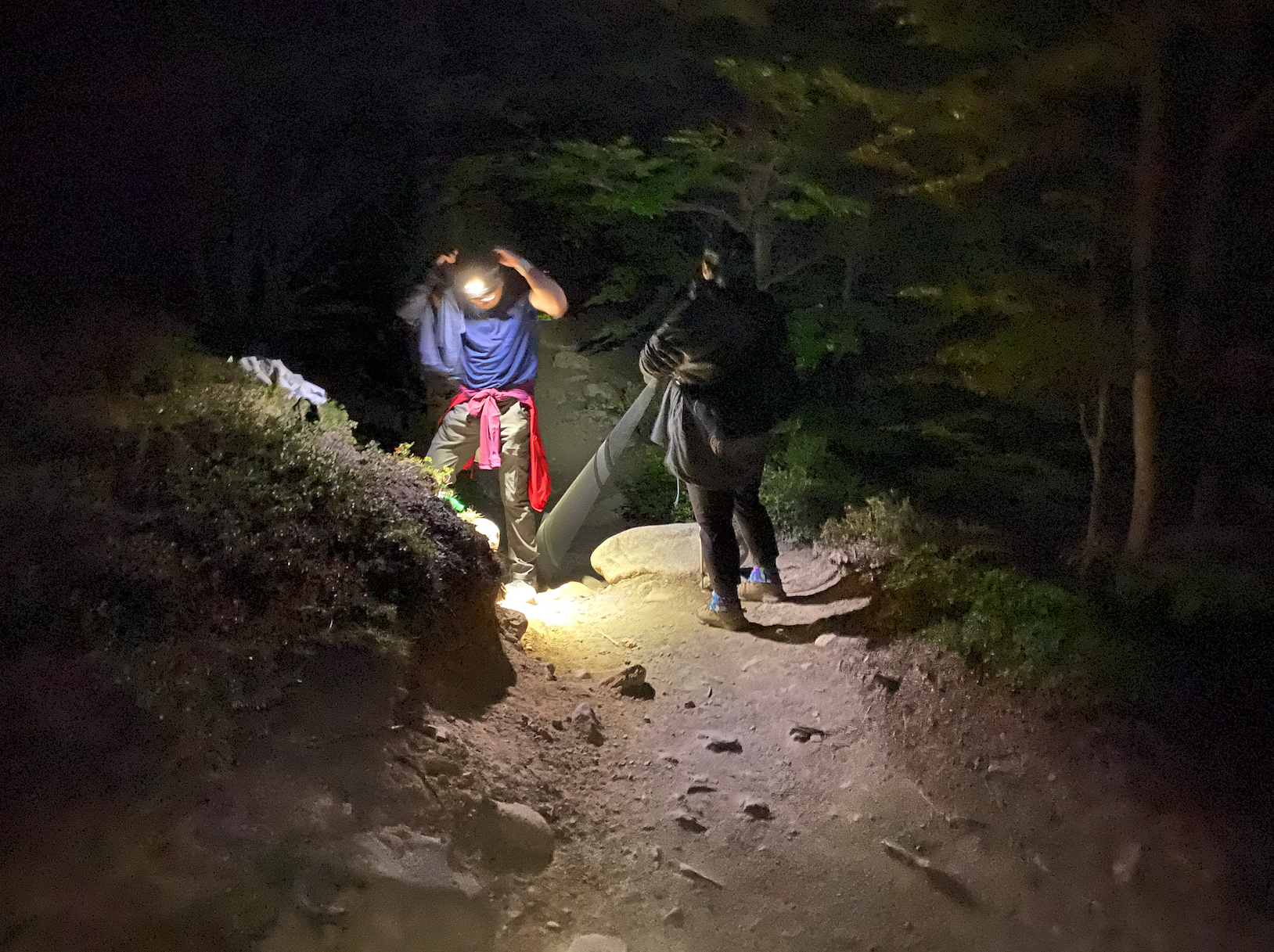 Around 2:30am, I went to wake Alli up, and then we all gathered back at the dining hall, ready for a night hike.