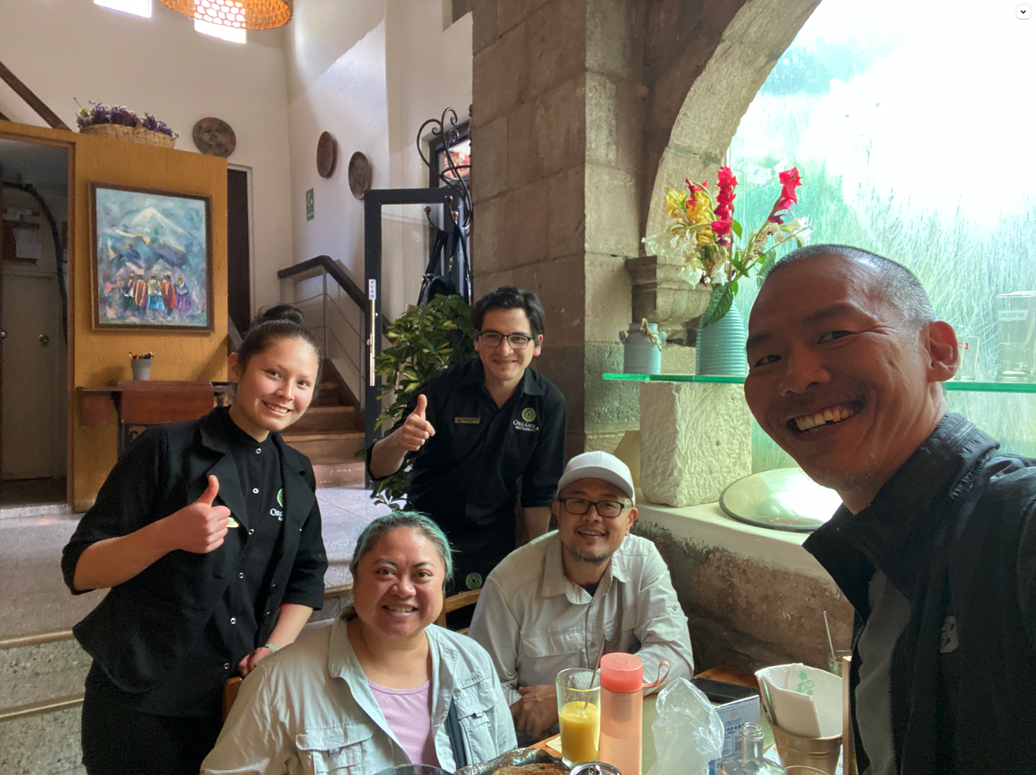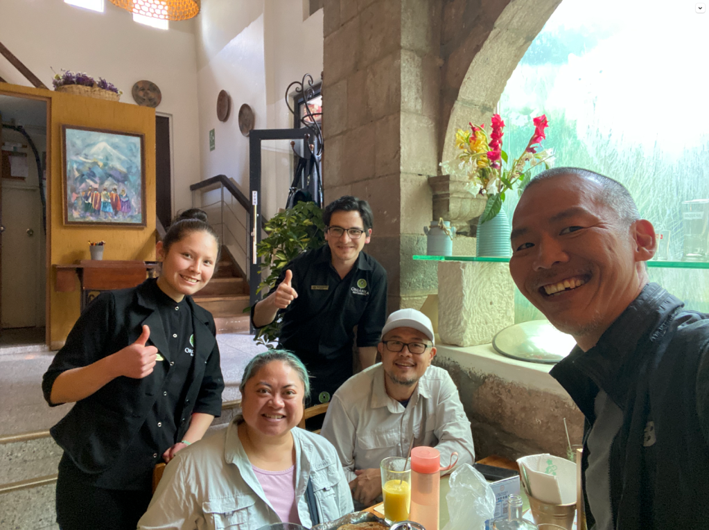 Kyu and Alli went on ahead. While waiting for the taxi to arrive, it was fun to chat with Rodrigo, his wife, and later, some customers as well. I met Dante Bejar, a former Inca trail guide.