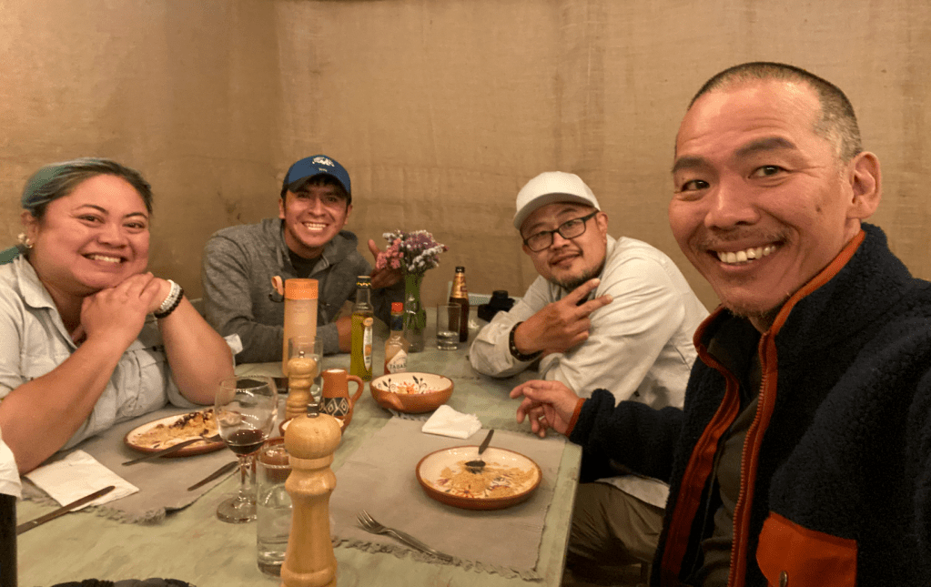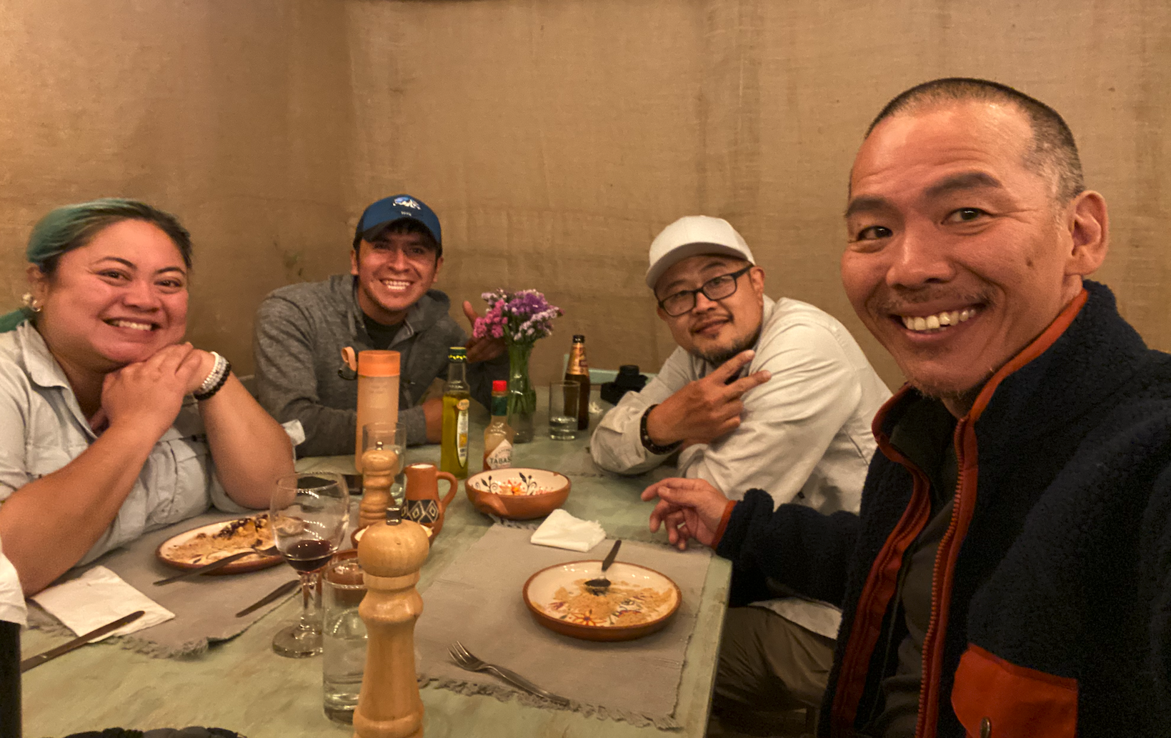 We grabbed a quick selfie with some of the staff, and were surprised to learn that the climbing guides also help out with food prep.