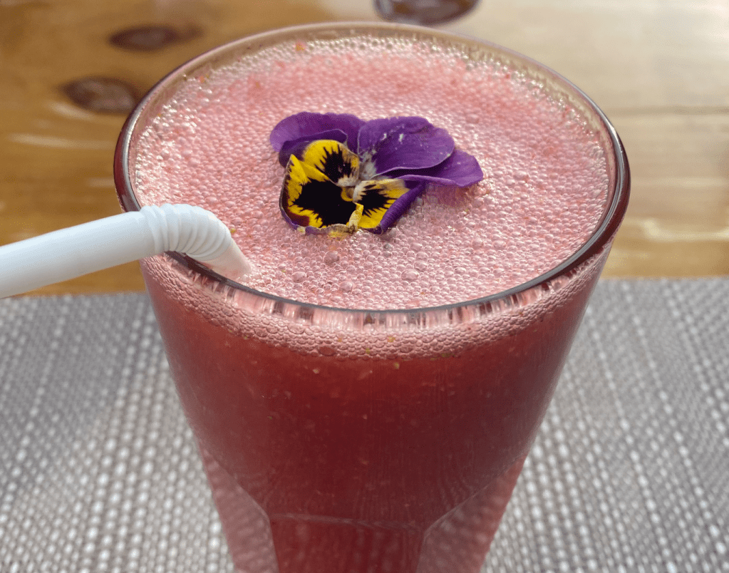 Alli enjoyed a fruit drink that had a flower called a pensamiento. It wasn’t the first time we had saw this flower as a garnish in a dish.